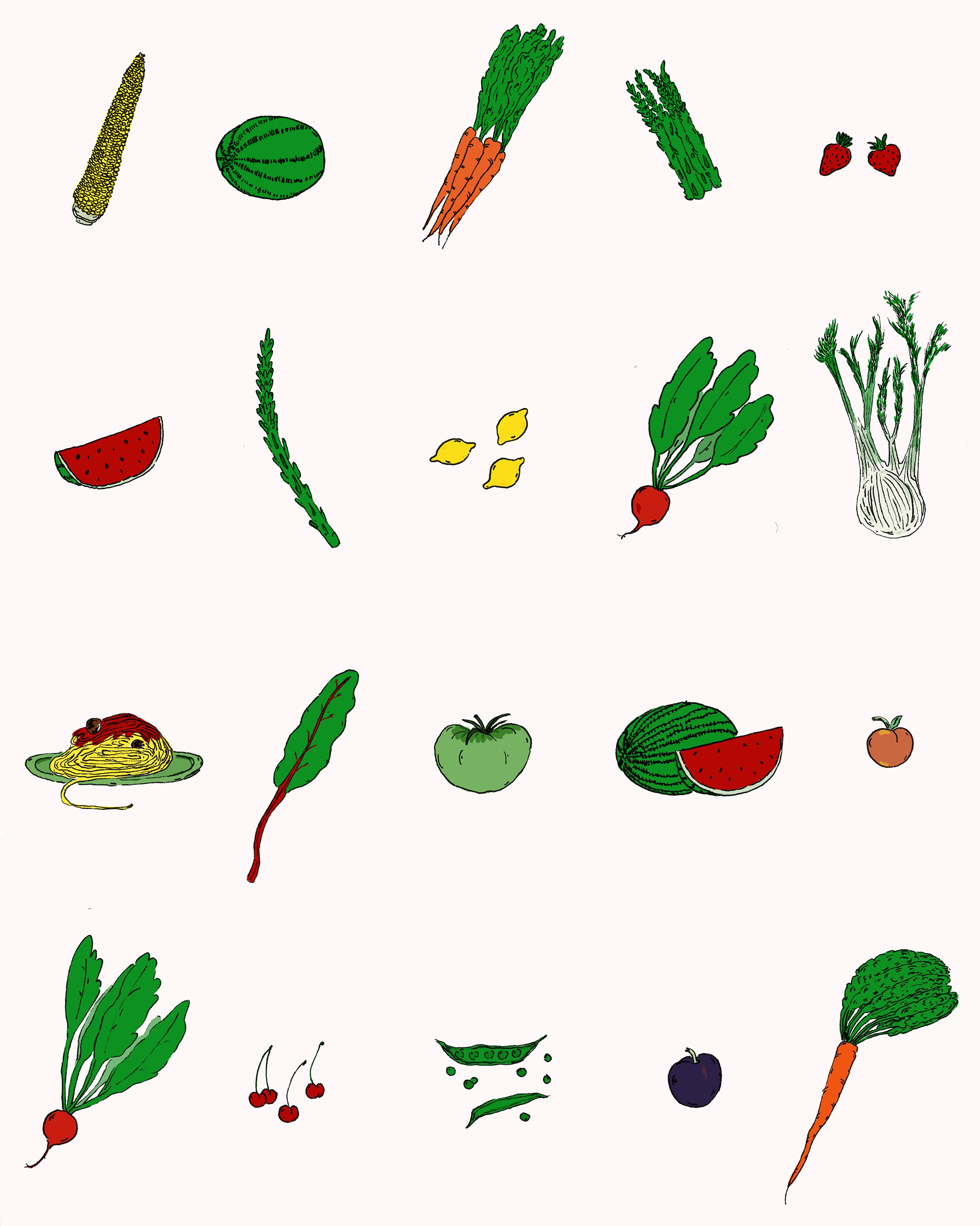 Summer fruits and vegetables for the tableware label’s chef series.