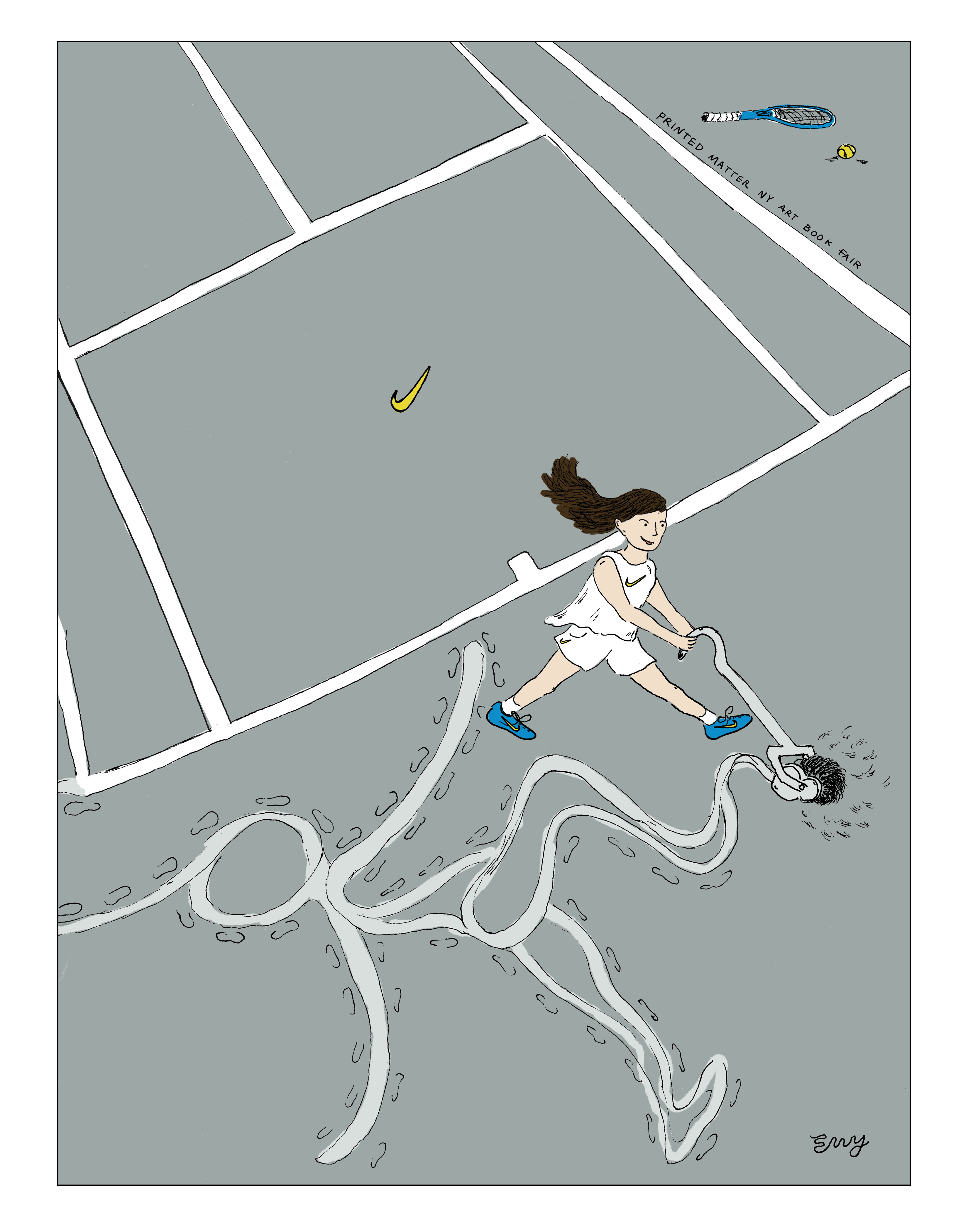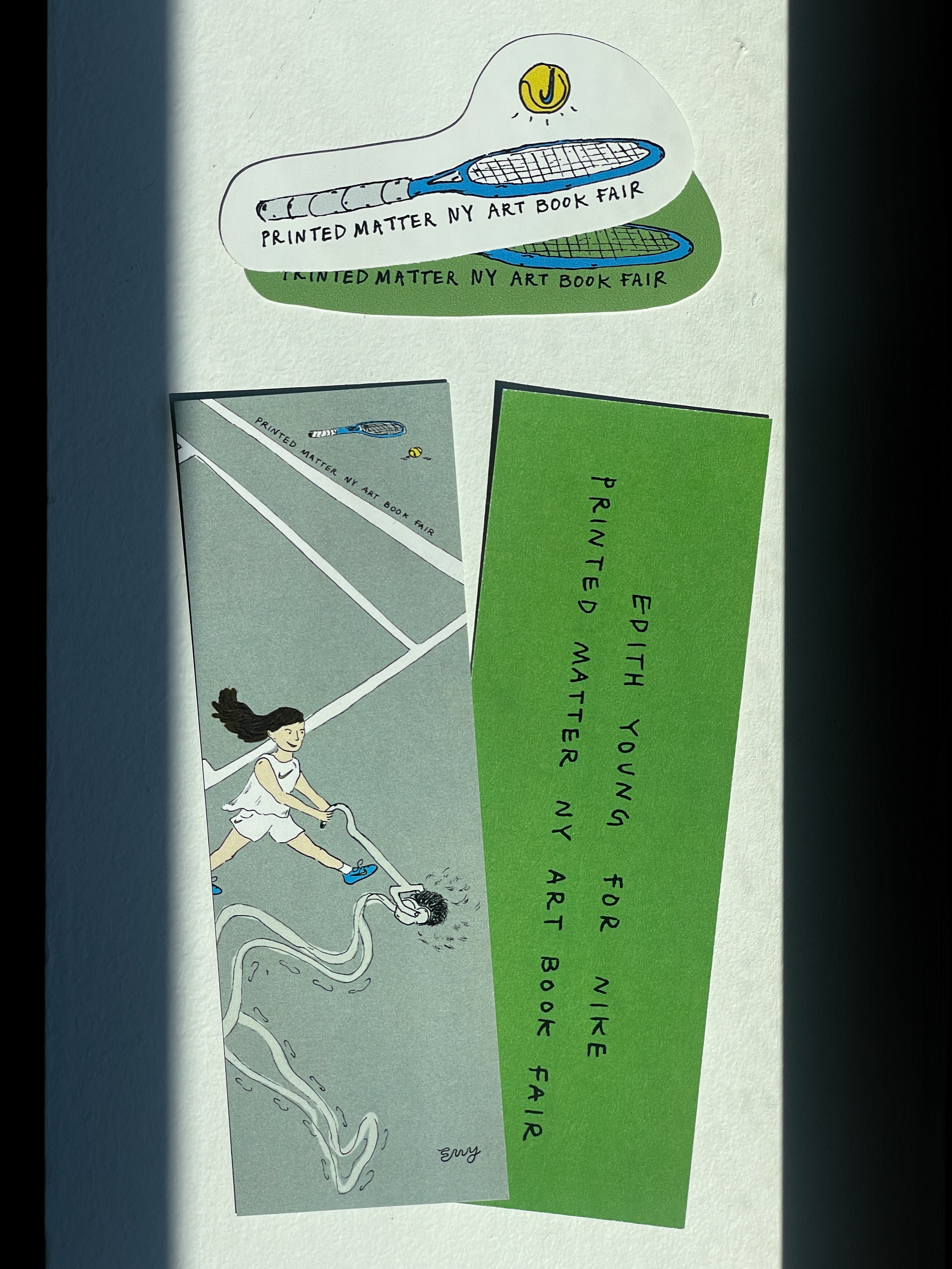 to mark nike’s support of the 2025 printed matter new york art book fair at moma ps1—WHICH makes sunday free to all attendees—we PARTNERED TO produce 4,000 bookmarks and ACCOMPANYING stickers, INSPIRED BY MY RELATIONSHIP TO BOTH SPORT AND ART. THESE made it into the hands of MOST SUNDAY VISITORS.